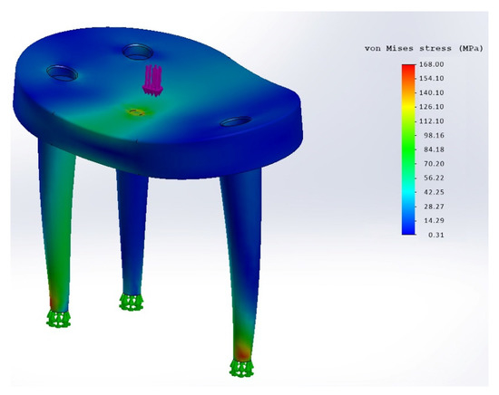With the rigid variant at 1500 N load, stresses greater than 90–100 MPa occur selectively in the material (Figure 8).