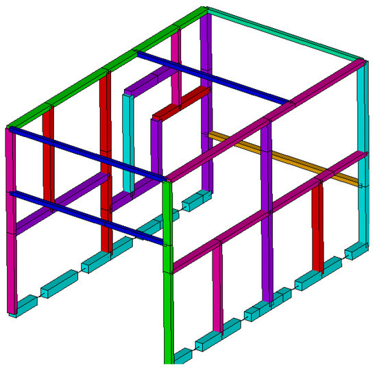 By using the developed alternative T-junctions, it was shown that the characteristics of beam models’ behavior can be modified. Evaluating the differences between the experimental structure and the models built, and ignoring the measurements corresponding to the support beams of the structure (sections a3, a4, a8, and a9), a reduction in the average deviations from almost 49% to 14% was achieved. It was also noticed that these models are indeed affected by the proper choice of elastic element configuration, ranging from an average error of 27% to 14%. In any case, even the worst selection of the elastic elements for the junctions shows a significant accuracy improvement with respect to the ordinary beam model. Additionally, by analyzing the stress distributions in the different finite element models, it was found that the elastic elements inserted into the joints did not show significant influence on the stress distribution.