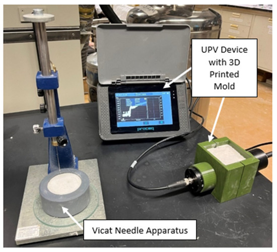 - Trtnik, G.; Turk, G.; Kavčič, F.; Bosiljkov, V.B. Possibilities of using the ultrasonic wave transmission method to estimate initial setting time of cement paste. Cem. Concr. Res. 2008, 38, 1336–1342. [Google Scholar] [CrossRef]