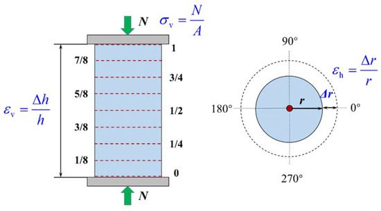 The mechanical properties of confined concrete have been extensively studied in recent years, illustrating that confinement can enhance concrete’s strength and ductility by inhibiting transverse dilation [1,2,3,4]. Many practical design situations, such as the anchorage of pre-stressing reinforcement, bridge piles, containment vessels, and columns of high-rise buildings, require the prediction of concrete behavior under multiaxial stress states [5]. According to the loading path of confining pressure, the confinement can be divided into passive and active confinement [4,6]. In passively confined concrete, the confining pressure increases with the development of transverse dilation as well as restraining the transverse dilation of concrete. Thus, the key to predicting concrete properties in passive confinement lies in constructing a relationship between transverse dilation and confining pressure. Nevertheless, the development trend of confining pressure is greatly influenced by the type of confining material, which makes the study more complicated. In comparison to passively confined concrete, the force in actively confined concrete is relatively simple, in which the confining pressure remains constant. Therefore, it is more convenient to study the relationship between transverse dilation and confining pressure. Moreover, the relevant study can be applied to study the dilation of passively confined concrete by changing the confining pressure. The researchers have also adopted the same method to study the mechanical behavior of passively confined concrete [1,2,4,6,7,8].