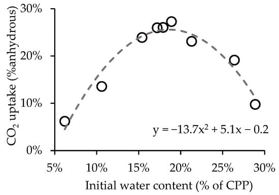 - Adopting an initial water content in CPP between 16–21% provided an increase in the CO2 uptake that can reach 20%.