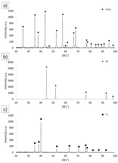 The starting materials were: alumina powder under the trade name TM-DAR by Tamei Chemicals Co., (Nagano, Japan), titanium powder from GoodFellow Cambridge Limited (Huntingdon, UK) and nickel powder from Sigma-Aldrich (St. Louis, MO, USA). The specifications of the powders provided by the manufacturers are presented in Table 1.