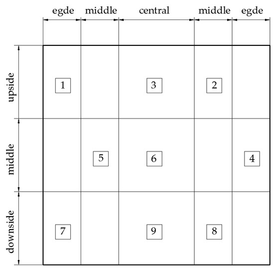 The content and distribution of CaCO3 in the PMMRS specimens were investigated by the acid washing method [38]. In order to ensure the sampling representation, the samples were obtained from the nine locations of the specimen. Figure 3 illustrates the sampling strategy considering both the lateral and vertical directions.