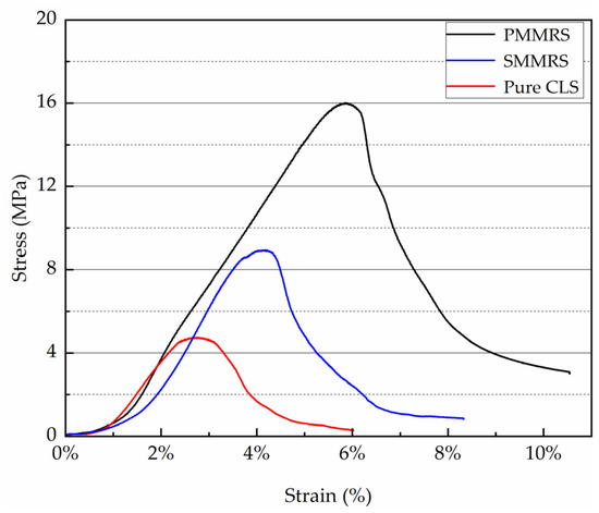 The strain–stress curve of PMMRS, SMMRS and pure CLS.
