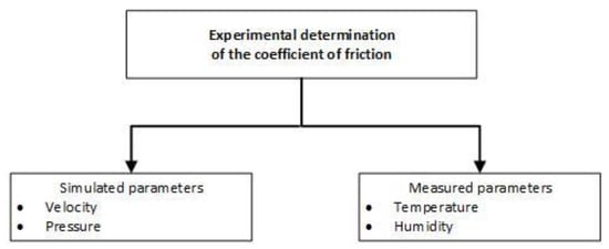 In Figure 4, the synthesized scheme of the parameters that influence the friction coefficient considered in the experiment is shown.