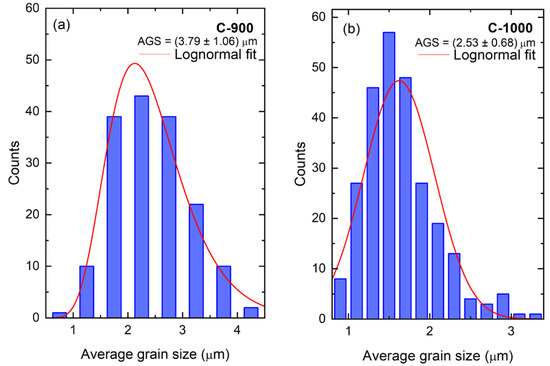 The average grain size of ceramics: (a) C-900 and (b) C-1000.