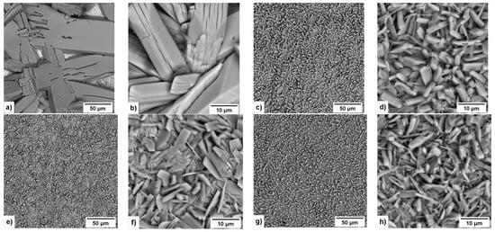 Figure 2e,f show, the coating produced in the solution with a concentration 0.6 g/L GO has some specific regions where relatively large and long crystals are absent.