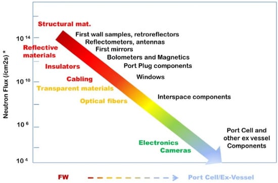- Casal, N.; Andrew, P.; Barnsley, R.; Bassan, M.; Barbero, J.L.; Bertalot, L.; De Bock, M.; Brichard, B.; Giacomin, T.; Juarez, R.; et al. Functional materials for ITER diagnostic systems—Radiation aspects. Fusion Eng. Des. 2017, 125, 277–282. [Google Scholar] [CrossRef]