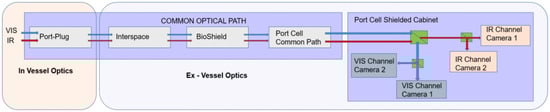 - Pastor, C.; Rodríguez, C.; Medrano, M.; Soleto, A.; Carrasco, R.; Lapayese, F.; de la Peña, A.; Rincón, E.; Cabrera, S.; Pereira, A.; et al. Optical design of ex-vessel components for the Wide Angle Viewing System diagnostic for ITER. Fusion Eng. Des. 2021, 168, 112607. [Google Scholar] [CrossRef]