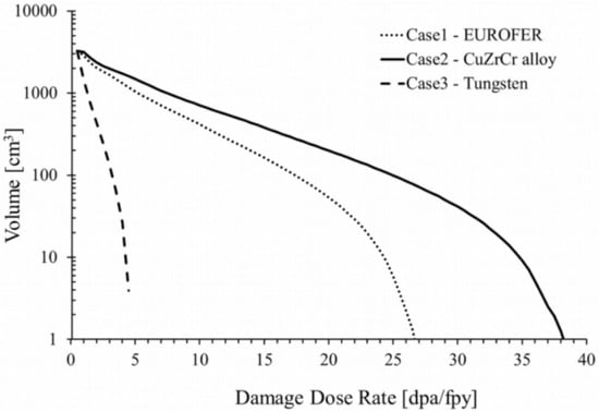 The neutron load is the energy of the 14-MeV neutrons from the D–T reaction which pass through the FW. Although they are not deposited in the FW, they can damage it. The neutron load accumulated over the lifetime of each project is the parameter that really matters. This is substantially larger for a reactor than it is for ITER because a reactor should last for roughly 15 years before it needs to be upgraded. ITER is only an experiment. The longer the material is exposed to a neutron flux, the more frequently one of its atoms will be knocked out of place by a neutron. After many dpa events, the material will swell or shrink and become so brittle as to be useless [14].