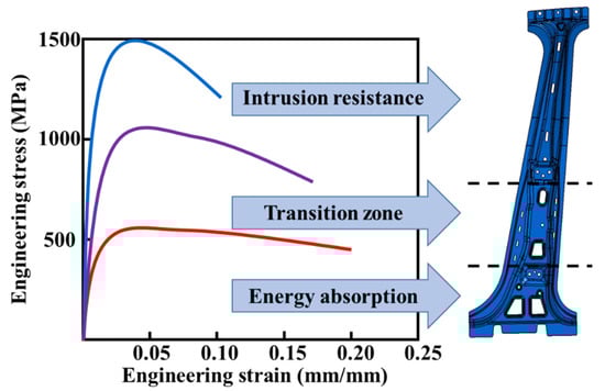 Schematic of the B-pillar with different properties.