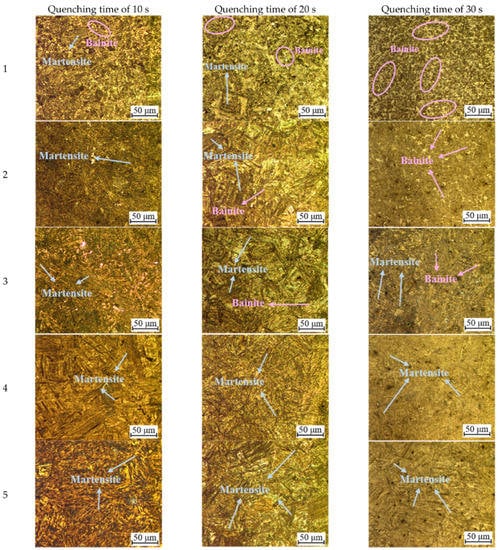 3.1. Effect of Quenching Time and the Temperature of Die on Phase Transformation