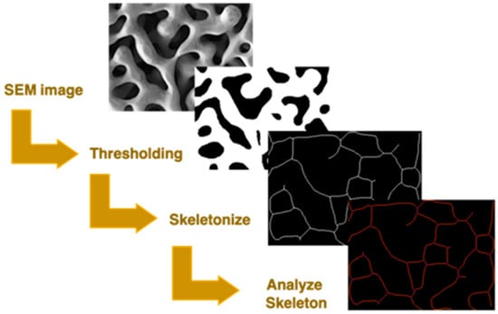 The SEM images were collected and analyzed from our measurements and the literature [19,20,21,22,23,28,29,30,31,32,33,34,35,36,37,38,39,40,41] with Fiji [42]. Binary images were obtained by converting solid and voids into 1 and 0 values, and then different procedures were applied to obtain the microstructural information: