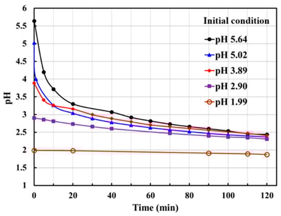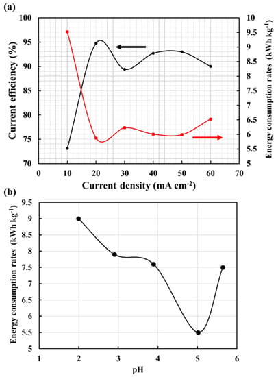 3.1. Influence of Electrolyte pH on Current Efficiency
