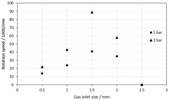 Figure 8. Rotation speed as a function of the gas inlet size.