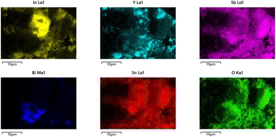 EDS elemental mapping of IBHP (In, Y, Sb, O from In2YSbO7 and Bi, Sn, Sb, O from BiSnSbO6).