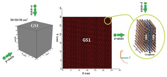 In 2020, Ying et al. [40], investigated the shielding properties of polyethylene/hexagonal boron nitride (polyethylene/h-BN). In their research, a multilayer structure including high-density polyethylene/hexagonal boron nitride layers and low-density polyethylene layers has been introduced. For comparison, this material was also simulated in a cubic structure with dimensions of 30 × 30 × 30 cm3.