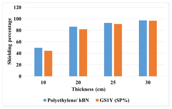 Shielding percentage obtained from polyethylene/h-BN and GS1Y.