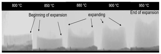 Evolution of the volumetric expansion within the temperature interval of 800–950 °C.