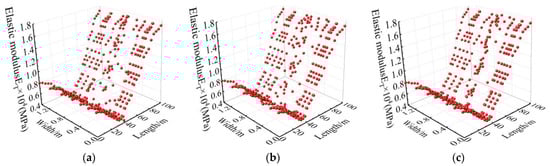 Elastic modulus at different positions in the track bed: (a) surface; (b) middle; (c) bottom.