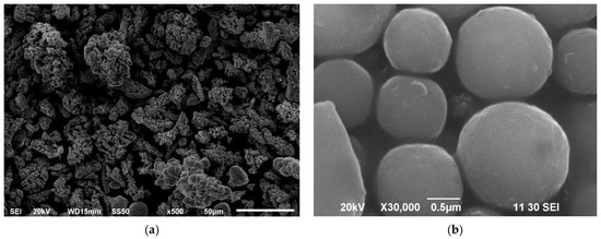 Morphology of matrix and reinforcement particles: (a) morphology of copper powder; (b) morphology of fly ash particles.