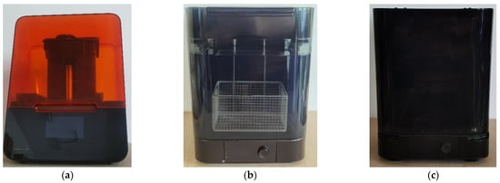 The apparatus for the material preparation. (a) Form3 low-force stereolithography 3D printer; (b) FormlabsForm wash; (c) FormlabsForm cure.