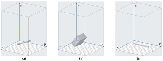 The printing orientations for the worst single mechanical property in Preform software. (a) The printing orientation for the worst tensile strength σb; (b) the printing orientation for the worst compressive strength σbc; (c) the printing orientation for the worst flexural modulus E.