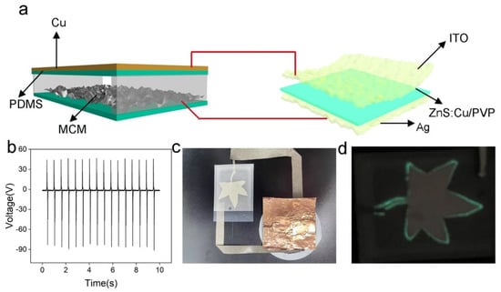 9. Zhang, S.; Qu, C.; Xiao, Y.; Liu, H.; Song, G.; Xu, Y. Flexible alternating current electroluminescent devices integrated with high voltage triboelectric nanogenerators. Nanoscale 2022, 14, 4244–4253. [Google Scholar] [CrossRef]