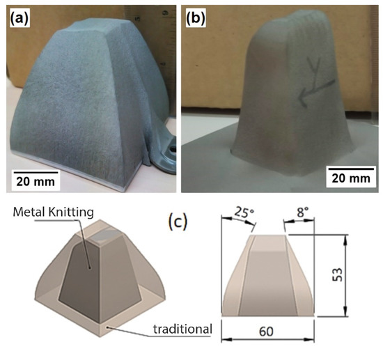 - Metal Knitting demonstrates the suitability for making geometries and dimensional capacities previously unfeasible by the traditional strategy, obtaining vertical sidewalls, despite 40 degrees of inclination in the 316L CSAM part produced by the traditional strategy;