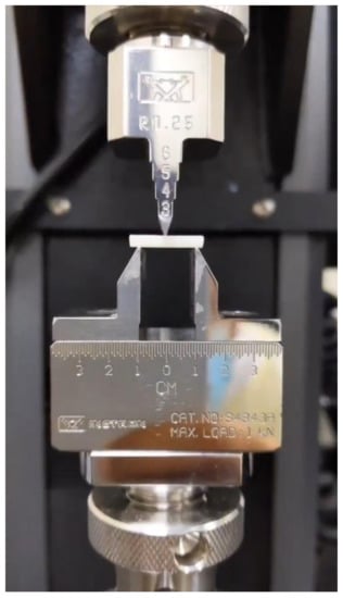 Ten bars from each group were tested in a three-point bending assembly attached to a universal testing machine (Multitest 2.5-i, Mecmesin, West Sussex, UK). The specimens were loaded until fracture using a 500 N load cell and crosshead speed 1 mm/min. The flexural strength (FS) was calculated using the formula FS = 3Fl/2bd2 following the standard ISO 6872-2015, where F is the fracture load (N), l is the test span (20 mm), b is the bar width (4 mm), and d is the bar thickness (2 mm). The mean for the FS (MPa) of each group was calculated (Figure 1).