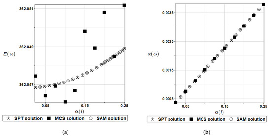 Similar to the above, the expected values , coefficients of variation , skewness and kurtosis of the first natural frequency are presented in turn in Figure 9. Additionally, the expected values and coefficients of variation for the first natural frequency are presented in Table 4 and Table 5.