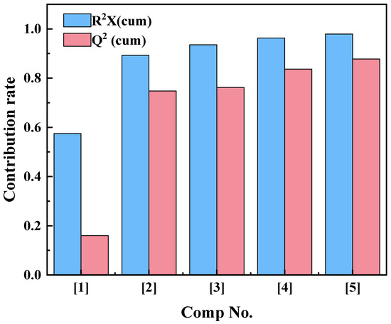 OPLS-DA is a supervised identification model that combines orthogonal signal correction (OSC) with partial least squares discriminant analysis (PLS-DA) to effectively separate Y-predictor variables from Y-uncorrelated variables in independent variable X, as shown in Equation (4).