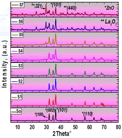 Ganesh, V.; AlAbdulaal, T.H.; AlShadidi, M.; S. A. Hussien, M.; Bouzidi, A.; Algarni, H.; Zahran, H.Y.; Abdel-wahab, M.S.; Mohammed, M.I.; Yahia, I.S.; et al. Enhancement in the Structural, Electrical, Optical, and Photocatalytic Properties of La2O3-Doped ZnO Nanostructures. Materials 2022, 15, 6866. https://doi.org/10.3390/ma15196866