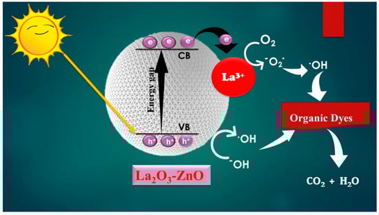 - Nguyen, L.T.T.; Nguyen, L.T.H.; Duong, A.T.T.; Nguyen, B.D.; Quang Hai, N.; Chu, V.H.; Nguyen, T.D.; Bach, L.G. Preparation, characterization, and photocatalytic activity of La-doped zinc oxide nanoparticles. Materials 2019, 12, 1195. [Google Scholar] [CrossRef]