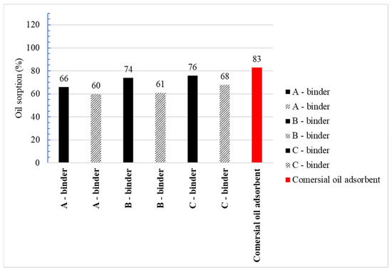 - All the agglomerates produced meet the requirements for oil absorbency efficiency for sorbents used by fire departments in Poland, which is 50% by weight of the sorbent.