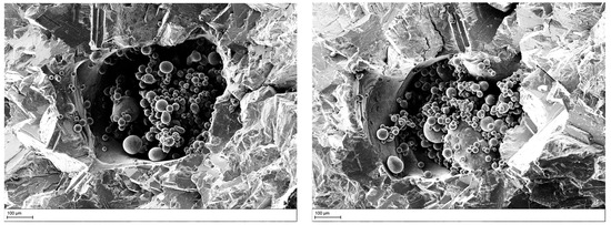 - The integration of Equation (8) requires the initial and the final crack lengths. The initial defect size is determined using the parameter obtained from the projected size perpendicular to the loading direction. In the present work, this was determined by fractographic observations, as shown in Figure 12.
