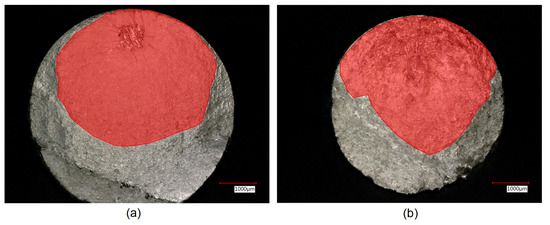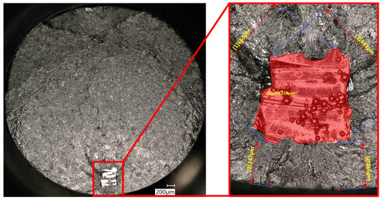 The defect area was determined by identifying a smooth defect contour in the fractographic analysis performed (see Figure 12).