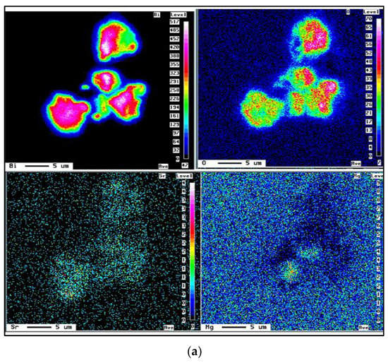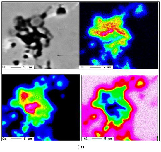 Examples of (a) Bi–Sr–Mg–O interactions, (b) X-ray mapping of Al-Ca-O particles in the captured picture (CP) shown in (b)—see Figure 5f.
