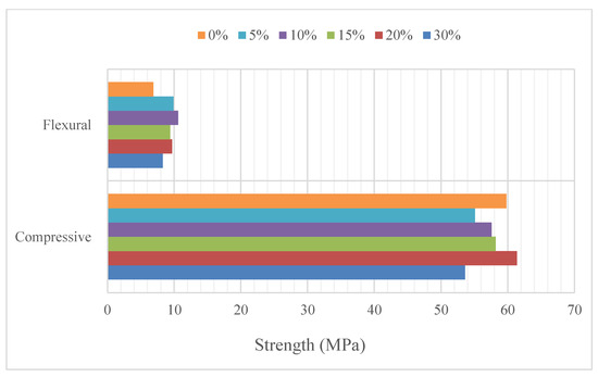 | [35] | 0–15% instead of cement | Increment about 12% compressive and increment about 6% flexural strength |