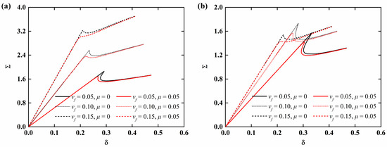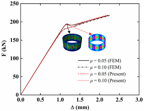 By solving the nonlinear equations presented in Equations (46)–(48), the undetermined coefficients amn, bmn, and cmn can be determined and the end shortening can be calculated from the following equation:
