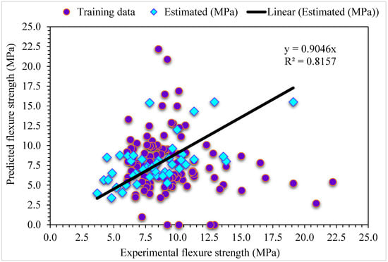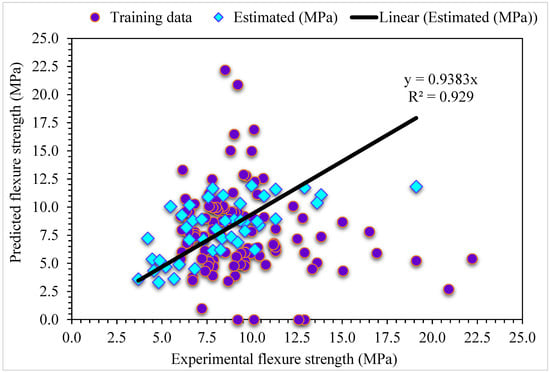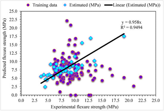 Experimental and MLPNN-Bagging predicted results for flexural strength.