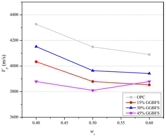 3.2.2. Influence of wc on Vp of Slag Blended Mortars
