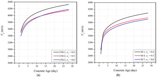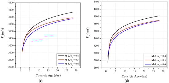 where is expressed in MPa, t is in days, and Vp is in m/s. Limits of applicability for Equation (3b) are as follows: 15% ≤ s ≤45%, 1 day ≤ t ≤ 28 days, 0.15 ≤ wc ≤0.6.