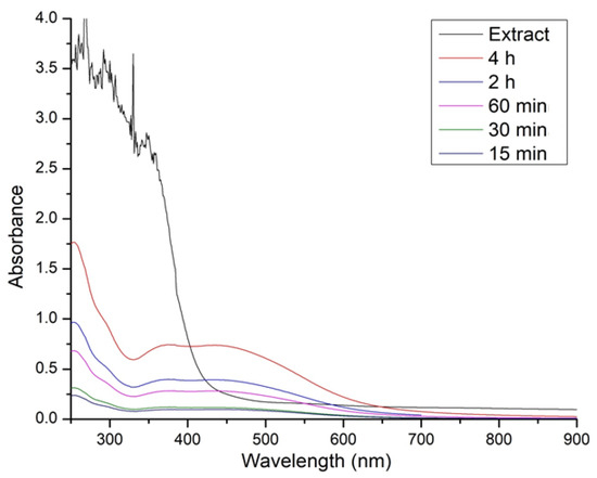 Representative of UV-Vis of silver nanoparticles at different time intervals.