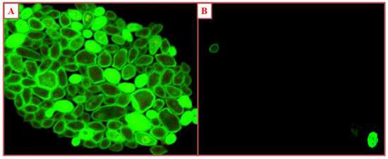 CLSM images of (A) C. albicans (Untreated); (B) 500 µg/mL of CS-AgNPs.