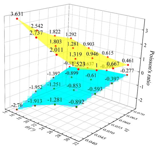 The Poisson’s ratio of the honeycomb structure with different geometries.