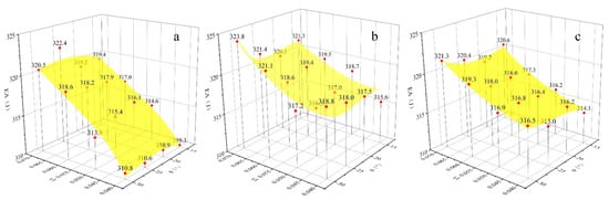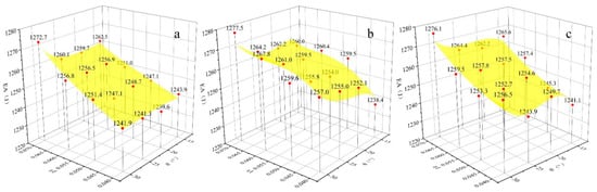 In general, the maximum displacement of the front face sheet, the maximum displacement of the rear face sheet, and the difference between them were defined as the dent depth, deflection, and core compression depth, respectively. The deflection reflected the impact intensity of the rear face sheet, and the smaller deflection predicted a better buffering performance. The deformation capacity of the structures is generally related to the core stiffness. It can be seen from the elastic modulus formula of a honeycomb structure that the higher t/l and the smaller θ would lead to a higher stiffness.