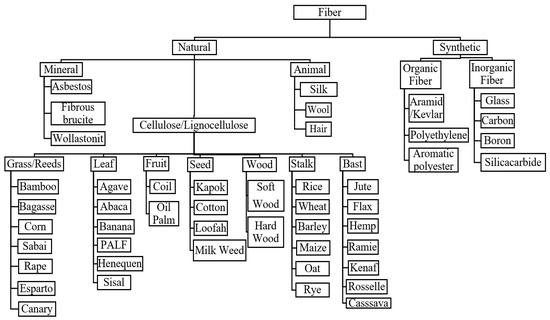 Natural fibers can be classified into three categories that are plants, animals, or minerals [38,39]. The widest utilization of natural fibers for reinforcement purposes is natural plant fibers [27,40,41]. Plant fibers are classified according to natural form or fiber-derived sections of the plant [42,43]. Figure 1 shows the different classes of plant fibers, (I) wood and (II) non-wood fibers (i.e., grass/reed, leaf, fruit, seed, wood stalk, and bast). The utilization of non-wood fibers for reinforcement with polymers has gained tremendous attention among researchers. Using these non-wood fibers helps conserve the natural forests, and excessive deforestation is worth discussing with the rising environmental issues. Tropical countries such as Malaysia, Thailand, Indonesia, and the Philippines have vast and unused natural fiber potential as an alternative to synthetic fibers. Cassava, cocoa pod husk, kenaf, sugar palm fibers, sago, pineapple leaf, oil palm fruit bunches and trunks, and coconut trunk fibers are various types of natural fibers that should be utilized and commercialized. Natural fibers are much more sustainable than synthetic ones. In production, cultivation, and manufacturing, they do not harm our environment [44,45]. Moreover, they are not hazardous to the health of the people who work with them. Moreover, even after processing, they are much more environmentally friendly than man-made fibers. Since synthetic fabrics like polyester release microplastics into the water during the washing process, synthetics harm not only nature and wildlife, but also humans with regard to the water cycle. Table 2 shows the advantages and disadvantages of natural fibers.