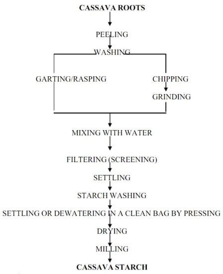 Flow chart for production of cassava starch [119].