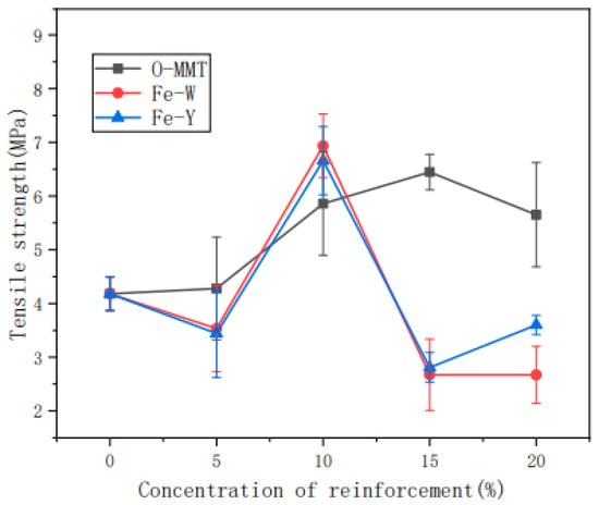 A study conducted by Ramirez et al. [144] on the reinforcement of green coconut fiber with cassava starch showed that the tensile properties were increased, and Young’s modulus was decreased with the decreasing of the diameter of the fiber, while the percentage elongation remained constant. The biocomposites were prepared using a compression molding technique with fiber concentration of 0, 5, 10, and 15%. The lignin content was found to be 35%. In addition, the moisture tension of biocomposites influenced the strength and elongation percentage. From a recent study, it was found that the cassava starch composites exhibited higher water absorption.